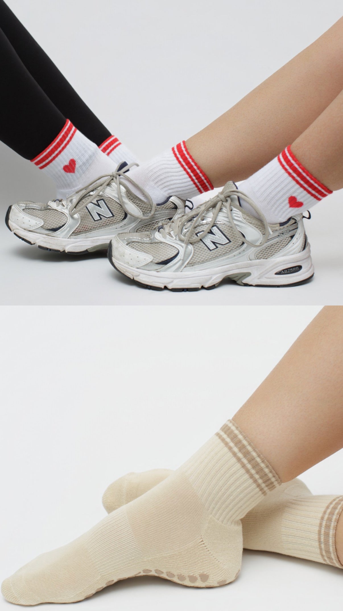 - Form fitting to hug the foot with a non-slip sole & our flat classic heart grips to compliment your reformer or mat sweat.